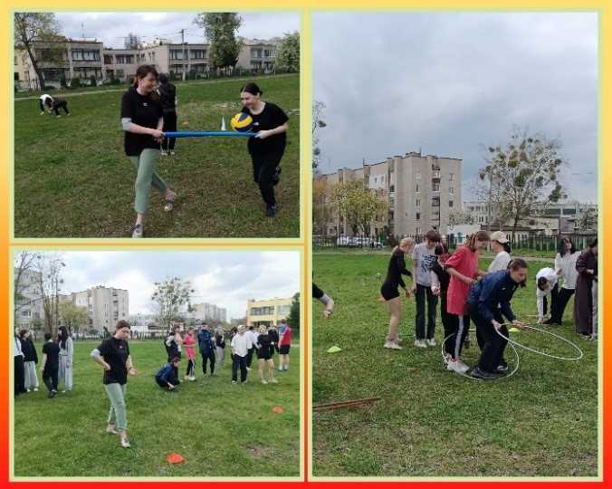 16.04.2025 года преподаватели физической культуры и здоровья Иусов Семен Александрович и Голуб Дмитрий Петрович провели спортландию для учащихся второго курса. Участники четырёх команд соревновались в ловкости и быстроте. Для ребят были подготовлены интересные и увлекательные состязания. Все участники спортландии получили заряд бодрости и хорошего настроения.