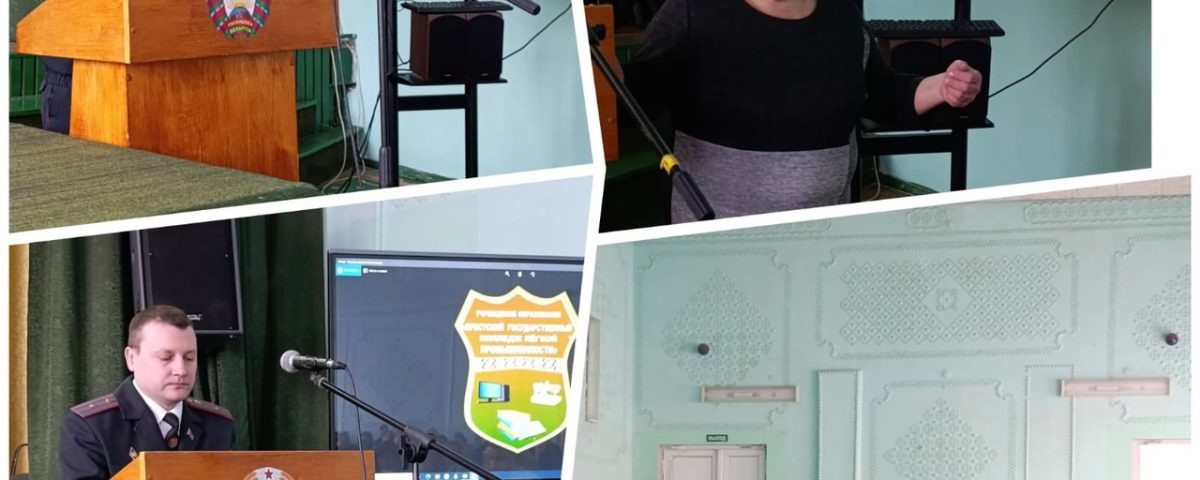 15 марта 2025 года в учреждении образования «Брестский государственный колледж лёгкой промышленности» прошло родительское собрание для родителей учащихся первого и второго курса, на котором перед законными представителями выступили директор колледжа Карабанова Татьяна Григорьевна, с профилактической беседой старший участковый инспектор по делам несовершеннолетних Московского района г. Бреста Филатов Руслан Юрьевич, педагог-психолог Коренева Л.И..